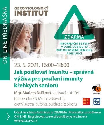 Záznam si můžete prohlédnout zde. - Jak posilovat imunitu. Správná výživa pro posílení imunity křehkých seniorů - Mgr. Marieta Balíková