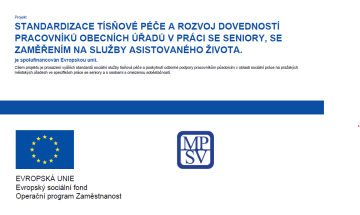 Cílem projektu CZ.03.2.63/0.0/19_099/0015216 Standardizace tísňové péče a rozvoj dovedností pracovníků obecních úřadů v práci se seniory, se zaměřením na služby asistovaného života, je prosazení vyšších standardů sociální služby tísňová péče a poskytnutí odborné podpory zejm. pracovníkům působícím v oblasti sociální práce na pražských městských úřadech ve specificích práce se seniory.